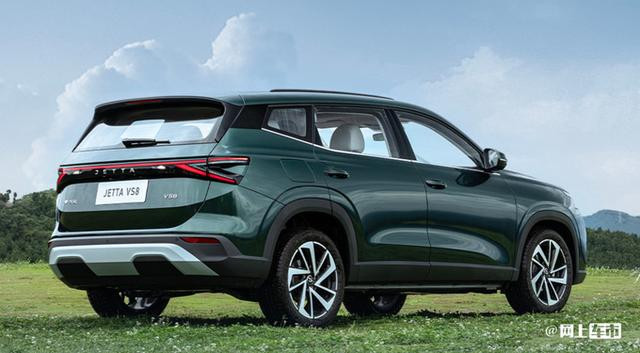 小窗部分,也和之前发生了一些变化,相比于VS7的那个小窗,VS8的看起来面积会更大 而且更加的狭长。这就与悬浮式车尾形成一种很好的呼应。并且让这个车的侧面看起来,要比实际尺寸还要更长。 车尾也是和前脸一样,采用的是贯穿式的尾灯。并且尾灯呈V字型设计,和前大灯形成了一种呼应。排气是采用隐藏式的设计。其实我个人觉得,这个反而是目前家用车,最适合的一种设计方式。而且放在VS8上也体现出捷达品牌整体的简洁、大气、耐看的设计精髓。
